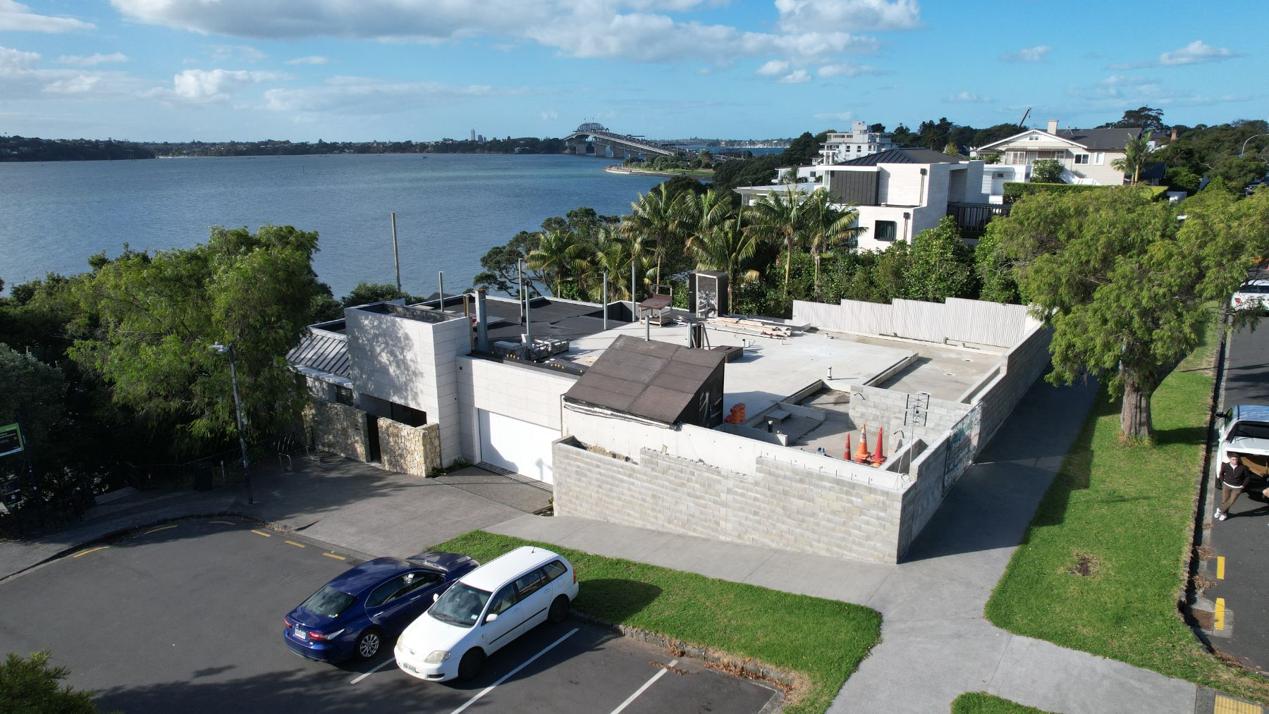 The property features direct beach front access, breathtaking elevated views of the harbor and bridge, expansive open entertainment areas, and the latest in modern finishes.