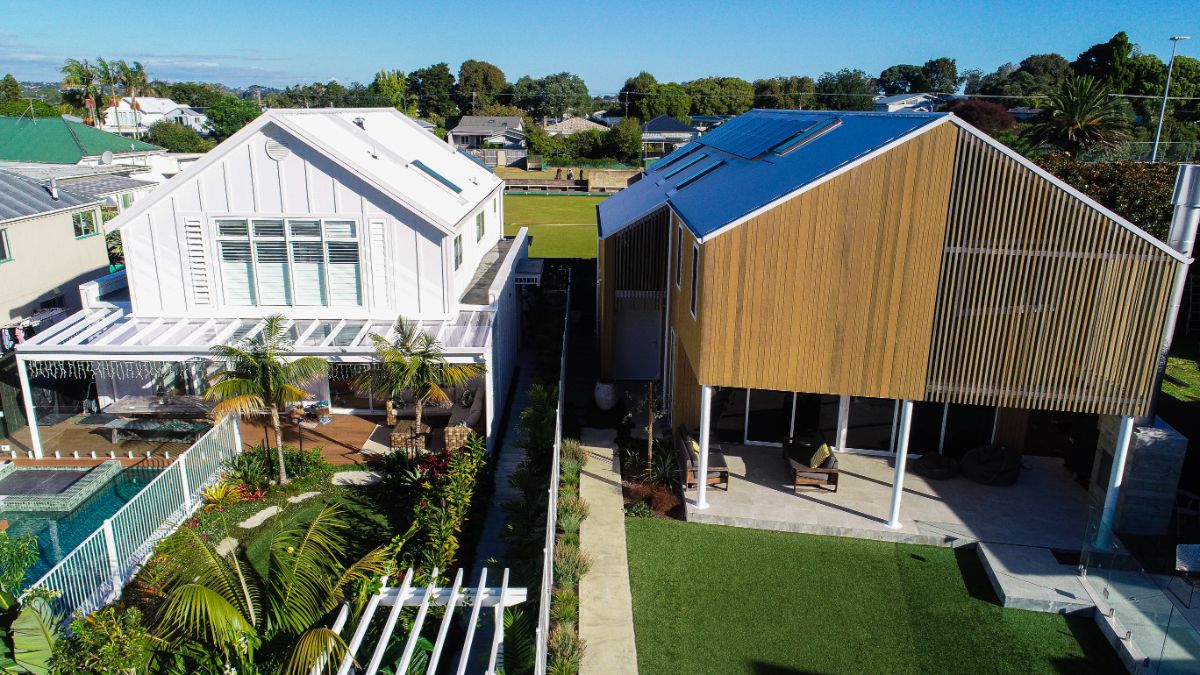 This project, managed, built, and delivered for two private owners, involved subdividing two rear sections and constructing two new houses. The development features pools, solar power, a space-saving turning circle, and lush, vibrant landscaping.